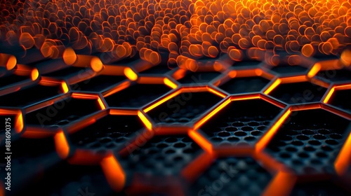 © VISUAL BACKGROUND, Obraz premium A close up of an orange hexagonal pattern.
