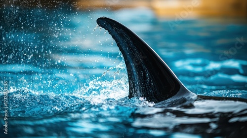 © Samady, Fototapeta premium A close-up of an orca’s dorsal fin cutting through the water