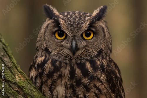 © Viktor, Fototapeta premium A close up of an owl sitting on a tree branch