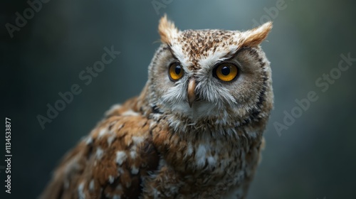 © Oleg, Obraz premium A close up of an owl with yellow eyes