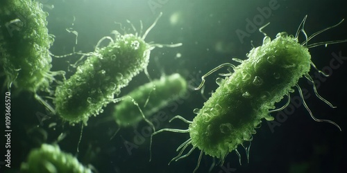 © upnowgraphics, Naklejka premium A close-up of bacteria with a green hue.