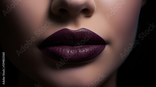 Fototapeta premium A close up of beautiful female lips with plum lipstick. Generative AI.
