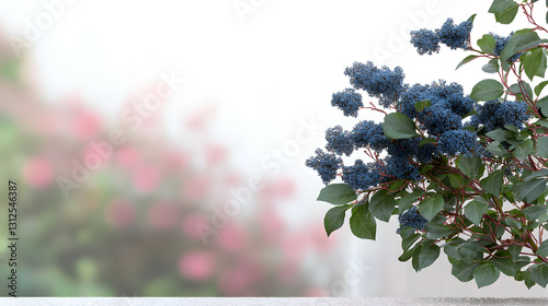 © Hafidz, Fototapeta premium A close up of blue flower clusters and green leaves
