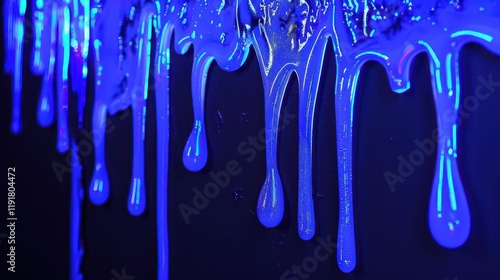Naklejka premium A close-up of blue paint dripping down a surface, creating a vibrant,...