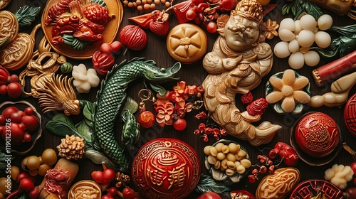 Fototapeta premium A close-up of Chinese New Year lucky charms and symbols