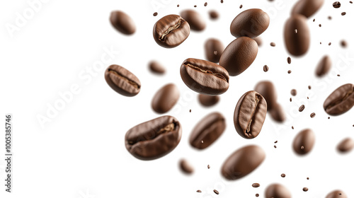 © MONWARA, Obraz premium A close-up of coffee beans in the air