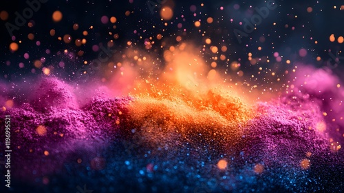 © Warakorn, Obraz premium A close-up of colorful powders being thrown into the air during a lively Holi celebration in India