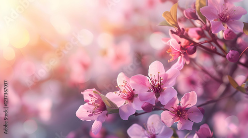 © rizkan, Obraz premium A close-up of delicate pink flowers with a soft, dreamy background.