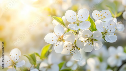 © RaNy, Obraz premium A close-up of delicate white flowers blooming in a sunlit meadow.