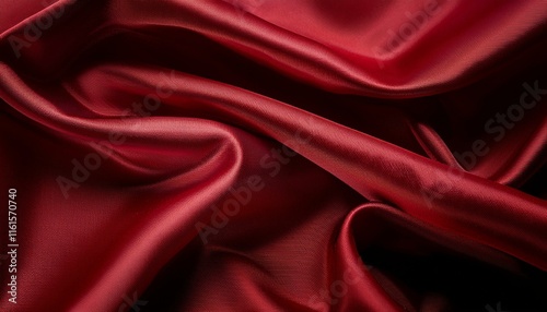 © MRSUTIN, Obraz premium A close-up of flowing, dark red satin fabric