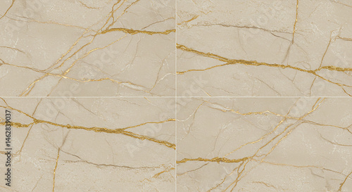 Obraz premium A close up of four beige marble tiles with golden veins forming a square...