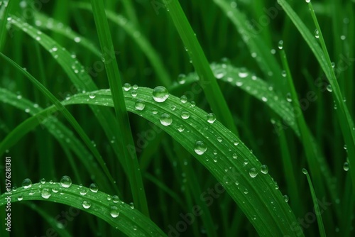 Naklejka premium A Close-Up of Fresh Grass with Water Droplets