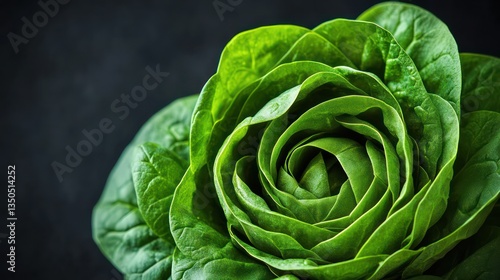© Nasreen, Obraz premium A close-up of fresh spinach leaves curled into a tight, elegant spiral, resembling a lush green rose