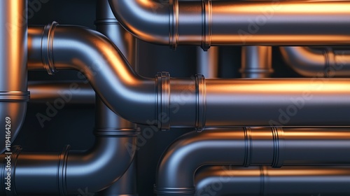 Naklejka premium A close-up of interconnected metallic pipes, showcasing their sleek design...