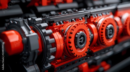 Fototapeta premium A close-up of intricate mechanical components featuring vibrant red and black...