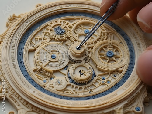 © AgungRikhi, Obraz premium A close-up of intricate watch gears being assembled with precision tools.
