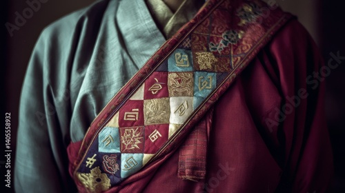 Fototapeta premium A close-up of intricately embroidered traditional garments in muted colors,...