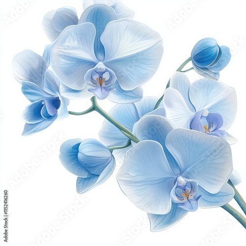 © Ishika, Fototapeta premium a close-up of light blue orchid flowers on a white background