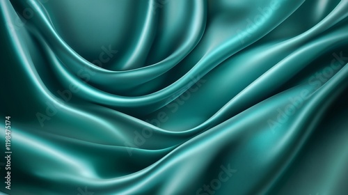 © jendralbiribiri, Obraz premium A close-up of luxurious teal silk fabric with flowing, dramatic waves