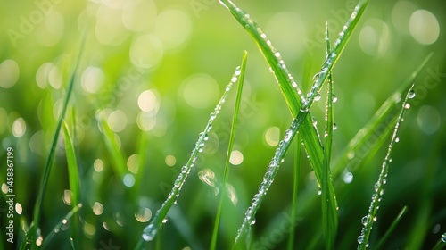 Naklejka premium A close-up of morning dew on delicate grass blades