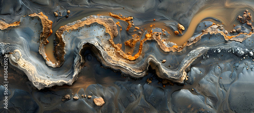Fototapeta premium A close-up of nature tidal flat mud patterns, the intricate designs created by the tides captured in stunning detail
