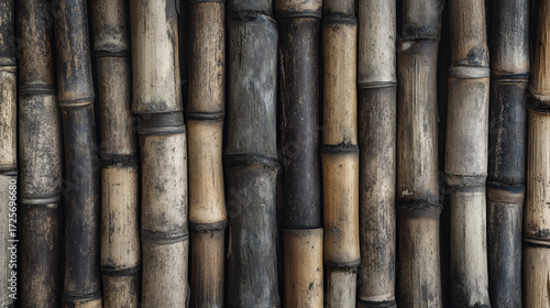 Fototapeta premium A close-up of old bamboo stalks with natural textures and earthy tones.
