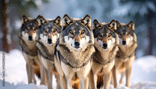 © sala, Naklejka premium A close up of pack of Grey Wolves