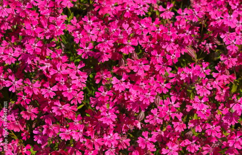 © schankz, Naklejka premium A close up of pink flowers with green leaves