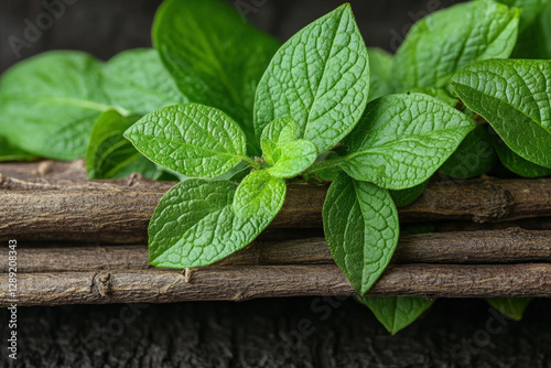 Fototapeta premium A close-up of Piper methysticum (kava) plant, detailed and natural, cultural theme