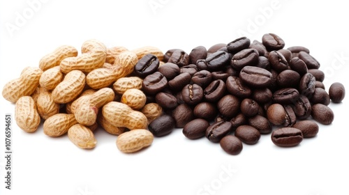 Naklejka premium A close-up of raw peanuts and coffee beans, showcasing their texture and...