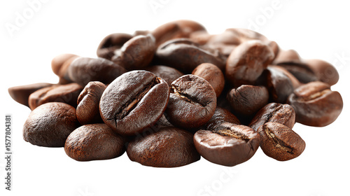 Naklejka premium A close-up of rich, dark brown coffee beans on a white isolated background.