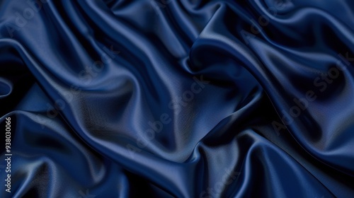 Fototapeta premium A close-up of satin fabric in a deep, midnight blue, with its smooth, shiny...