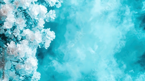 © Sonya, Fototapeta premium a close-up of several flowers blooming on a tree branch with a wisp of smoke emanating from the top