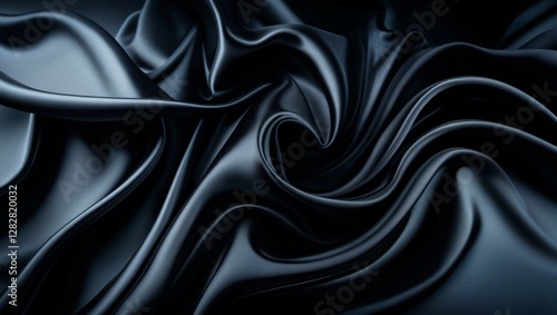© soniyaakter, Obraz premium A close-up of smooth, flowing black silk fabric with a luxurious, glossy texture.