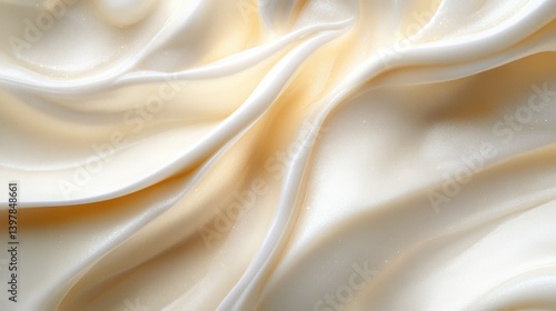 © dreamer, Fototapeta premium A close-up of smooth, flowing cream-colored satin fabric, showcasing its soft texture and elegant draping.
