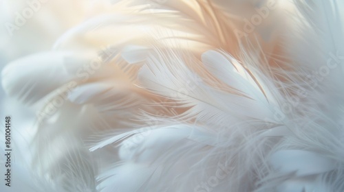 Obraz premium A close-up of soft, white feathers under gentle lighting, creating a serene and delicate texture in a dreamy setting.