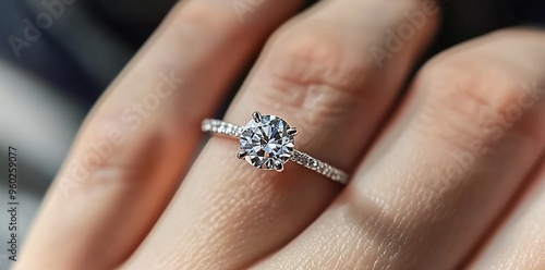 © ma, Obraz premium A close-up of someone holding an engagement ring on their finger.