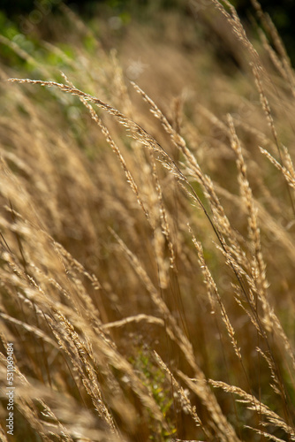 © Laura Kezbere, Fototapeta premium A close up of tall wild grass field in September in Latvia