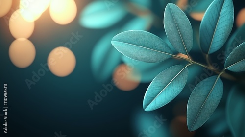 Fototapeta premium A close-up of teal leaves with bokeh lights in the background.