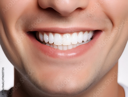 © Iryna, Fototapeta premium A close-up of the lower part of a man's face with very clean perfect teeth