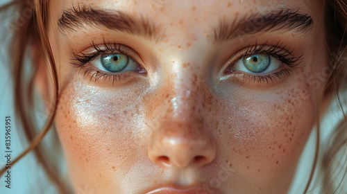 © Wiseman, Fototapeta premium a close up of the youthful attractive girl s face with glowing skin stunning white woman s face with clear skin.illustration