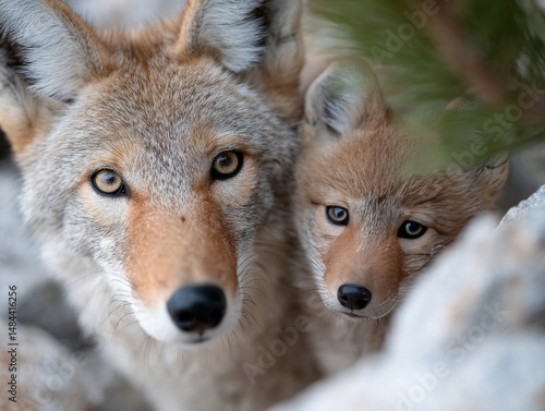 © VISUAL BACKGROUND, Naklejka premium A close up of two coyotes looking at the camera