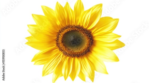 © ArpPSIqee, Fototapeta premium A close-up of vibrant yellow sunflower petals with their bold hues and circular formation, isolated white background, minimalist art style