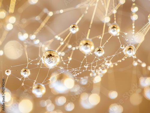 © AI Farm, Obraz premium A close-up of water droplets on a spider's silk, each droplet reflecting the world around it,