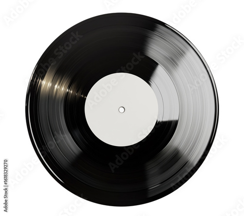 Obraz premium A close up overhead view of a black vinyl record isolated on a transparent...
