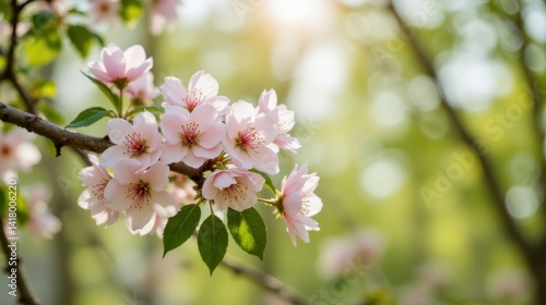 © kittipoj, Fototapeta premium A close up photo capturing a cluster of Cherry blossoms in full bloom