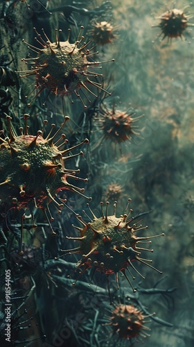 © Olga, Obraz premium A close-up photo of a cactus with numerous spiky plants emerging from its center is captured by the camera