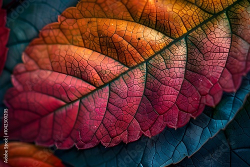 © Nadezhda, Obraz premium A close up photo of a colorful leaf