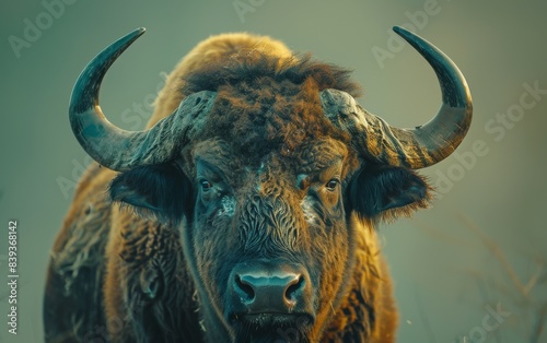 © FMSTUDIO, Naklejka premium A close up photo of a large male buffalo in a forest