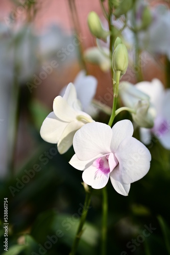 Fototapeta premium A close-up photo of orchid. Suitable for use as cards, menus or flyers. In festivals, it can add elegance and convey a good atmosphere.